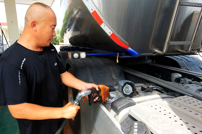 13:30,來到了五公里外的一處加油站曾超對黃河重卡加油,“這里搞活動,油價才7.4元每升,比其他的加油站便宜2毛錢,一次加注889升,就省下177元錢?!?/span>