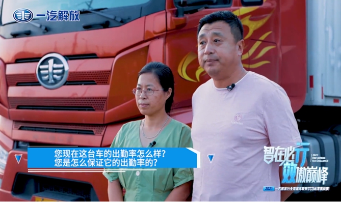 預賽期間,馮秋影夫婦倆駕駛的解放J7出勤率百分之百。每輪月度排名,二人都取得相當穩健的成績,接連贏得廠家送出的車模、車載冰箱等獎品。面對鏡頭,馮秋影總結夫妻二人的參賽經驗時,她說:“控制油門開合是關鍵。拉輕貨時平均油耗達到24L,拉重貨時油耗在30L左右,利用裝貨、卸貨的間隙進行車輛維護保養。”