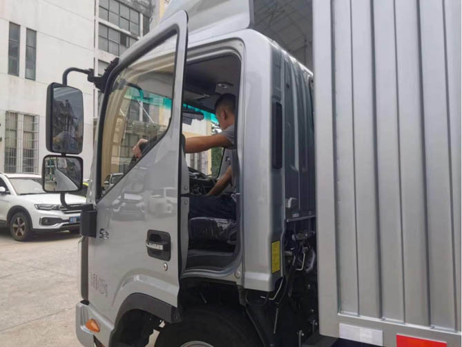 有親戚這位老師傅把關(guān),余老板試駕時(shí)對自己的用車需求也清晰很多。他自己是第一次接觸卡車,之前沒開過,4米2的藍(lán)牌輕卡開起來還是感覺有點(diǎn)大,拐彎不太方便,自己的運(yùn)輸量不是特別大,有個(gè)3米多的貨廂就完全夠用。最后,余老板就選了這輛3米7貨廂的帥鈴S3小卡。