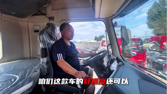 長途運輸對于很多卡友來說都是一種挑戰,不僅面臨著多種路況的考驗、貨源不穩定的制約、長途跋涉的勞累,更對身體狀況有更大的考驗,“這車視野開闊,空間大,座椅也很舒服,帶有氣囊,久坐也不會腰疼。開了一天后,可以在寬敞柔軟的臥鋪睡上一覺,?這也算是一種享受。”?