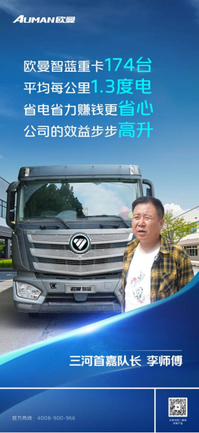 從柴油車到新能源車,李隊長和他的車隊經歷了運輸行業的綠色變革。在他的帶領下,三河首嘉車隊正在向著更加綠色、更加高效、更加安全的運輸目標邁進,書寫著綠色運輸的新篇章。而歐曼智藍純電重卡,以其動力高效、省電能賺、安全舒適的優勢,成為他們實現這一目標的重要伙伴。對此,李隊長信心滿滿地說:“這車買對了,以后我們車隊都要換成歐曼智藍。”