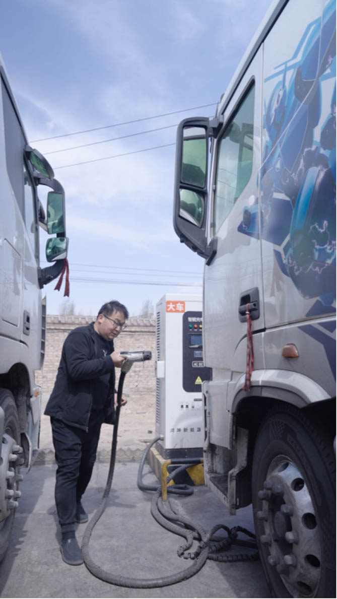 “這款車在重車情況下,續航就能達到230公里左右,而且這款車有動能回收功能,像我們在交口拉砂石料回來的話,下坡比較多,回收電量就在6%左右,這樣的續航能力從裝貨到單程送達完全沒問題。”