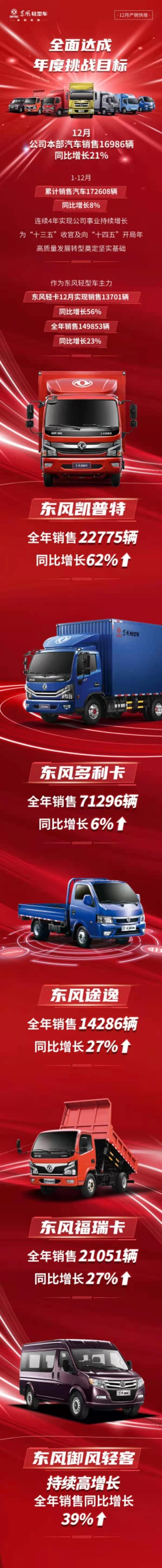 東風(fēng)汽車股份總經(jīng)理李軍智表示,2021年是“十四五”開局之年,機(jī)遇與挑戰(zhàn)并存。公司將全面布局輕卡、輕客和新能源汽車事業(yè),陸續(xù)投放戰(zhàn)略性新品凱普特星云、全力投放B19國六商品、小輕卡途逸寬體新品以及V9輕客、凱普特e星、EV輕卡物流車等,打造明星車型、打造高收益車型,圍繞“客戶體驗領(lǐng)先”的品牌使命,不斷提升產(chǎn)品力、體系力和品牌力,力爭打贏開局之戰(zhàn)。