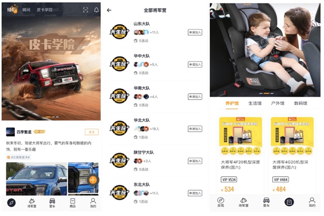 皮卡生活A(yù)PP圍繞“皮卡學(xué)院”等重點(diǎn)板塊精心搭建,通過酷樂潮玩、改裝文化、登山涉水、博學(xué)多才等細(xì)分內(nèi)容,將皮卡車主、KOL的多彩車生活一網(wǎng)包羅。其中“將軍營”、“愛車”、“精品”等矩陣模塊,將以強(qiáng)大的功能、多元的玩法、鏈動線上線下的體驗(yàn)以及超多的優(yōu)享鉅惠等,解鎖皮卡圈層新社交,讓皮卡不止成為一個交通工具,使其成為匯聚皮卡愛好者的紐帶,為廣大車主營造豐富生活、愛好、事業(yè)的全新生態(tài)圈,在這里遇見皮卡生活的萬千形態(tài),傳遞對生活的熱愛和正向價值,讓皮卡文化真正的流行起來!