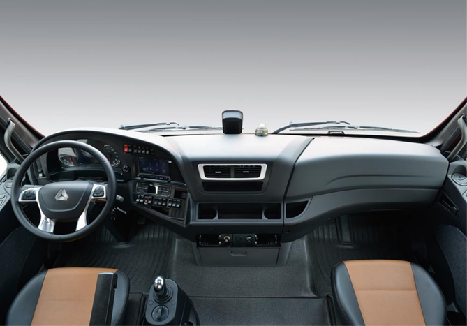 配置方面,汕德卡危化品牽引車帶有7寸彩屏儀表、電動帶電加熱后視鏡、電動天窗、真皮多功能方向盤等轎車化配置;配備多媒體大屏,集成自動空調、差速鎖、緩速器、取力器、駐車空調、濾芯加熱、主副油箱切換、自動大燈等功能,提升人車交互體驗;搭載智能通車聯網系統,支持藍牙互聯、WIFI、導航等功能,以領先行業的智能互聯科技,賦能智慧運輸,更有中國重汽七星級“親人服務”全生命周期護航,用心守護無憂旅程,讓危化品運輸輕松無患。