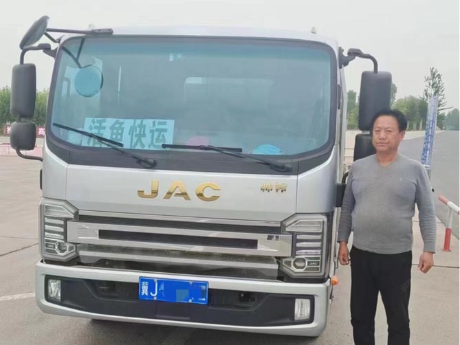 新鮮活魚運輸看似簡單,實則門道不少。比如,使用封閉水箱運輸時,裝魚后水箱內水位需要接近罐頂,以減少運輸過程中水體的來回擺動,從而降低魚的損傷。再比如,長途運輸時,一般需要提前1 ~ 2天停止投喂,讓魚的消化道排空,可以減少運輸中的水污染。除了這些“竅門”外,對于運輸車的選擇也很關鍵。來自河北滄州的張老板就專業做活魚運輸,他選擇的車輛是江淮1卡帥鈴S7。