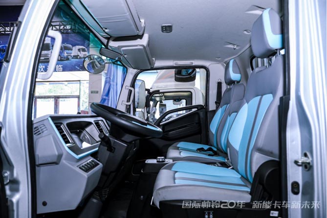 這套亮點(diǎn)多又實(shí)用的混動(dòng)系統(tǒng)與帥鈴S系駕駛室的家族化外觀相互融合,如果不是前臉?biāo){色的Logo和車門上HS6的標(biāo)牌,或許很難一眼辨認(rèn)出它混動(dòng)的身份。環(huán)抱式的儀表臺也是家族式設(shè)計(jì),熟悉帥鈴S系油車的卡友肯定不會(huì)陌生。但電光藍(lán)內(nèi)飾和旋鈕式換擋機(jī)構(gòu)又明顯與燃油車型不同,新能源氛圍的科技感更強(qiáng)。