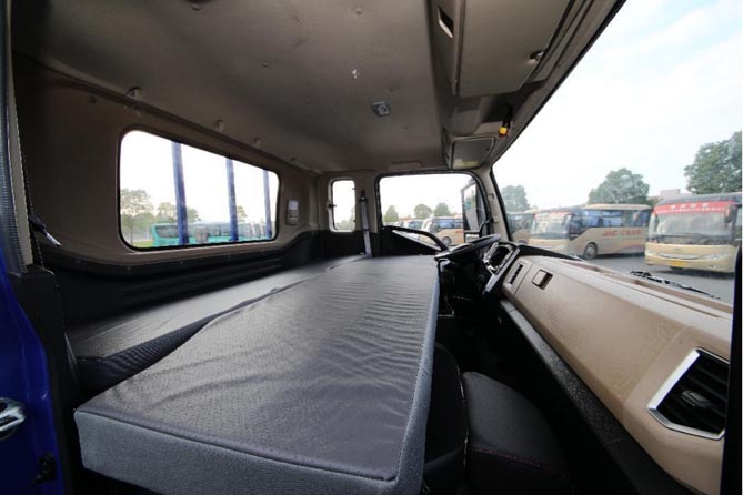 對于長途重載運輸路線的貨車司機來說,運輸生活用“以車為家”來形容是非常準確的。他們早出也不一定能實現晚歸,午休和夜間休息更多是在車上度過。為了給用戶提供更加舒適和便捷的長途運輸車生活,江淮1卡德沃斯T7以用戶舒適為核心,對駕駛室設計花足了心思。通過整體駕駛室語言的設計和布置,德沃斯T7能夠實現1.8m*1.08m大床房的配置,讓用戶無論是午休還是夜晚休息都能伸直雙腿,充分休息疲憊一天的身體;除此之外,駕駛室內部設計有160L的魔術儲物空間,通過頂柜儲物盒、儀表板雜物盒、排半臥鋪儲物盒、靠背盒等儲物配置為用戶帶來更大的儲物能力,像被子等生活用品也可以輕松裝下,大大提升了用戶的長途運輸生活舒適度。另外,像氣囊座椅、智能大屏等舒適性配置也是可以選裝的。