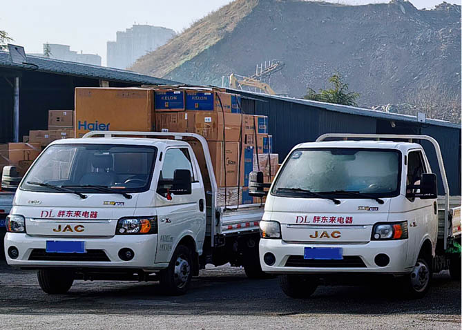 據楊經理描述,胖東來為了承接家電超市內冰箱、洗衣機和空調等大型電器的配送工作,組建了高時效、高要求的電器物流運輸團隊,主要負責將客戶在店內下單的電器,從胖東來自發倉庫配送到客戶家中的物流轉運工作。而對于顧客至上和服務至上理念深入的胖東來來說,電器配送也不僅僅是轉運工作而已,他們對電器的運輸時效和質量要求高到“離譜”,這也是他們選擇江淮1卡愷達運輸車的關鍵。