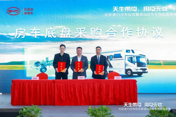 在現(xiàn)場,比亞迪商用車攜手江蘇安迪(經(jīng)銷商)與法美瑞(房車企)正式簽署房車底盤推廣三方合作框架協(xié)議,同時也與山東威海泓悅(經(jīng)銷商)、威士捷(房車企)達(dá)成采購合作。各方將整合優(yōu)勢資源,共同推動房車底盤及整車業(yè)務(wù)發(fā)展,提升市場競爭力。