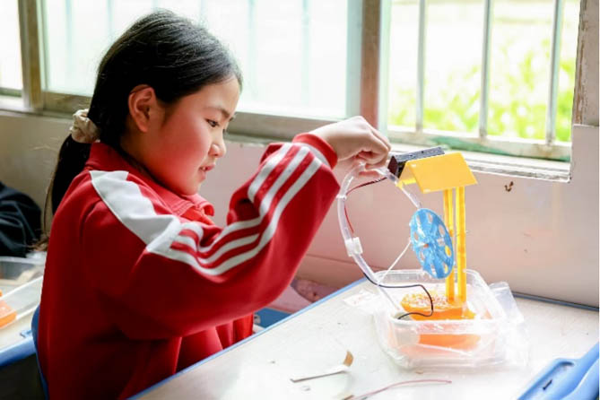 在本次“點亮未來計劃”志愿者行動中,學生們在志愿者的悉心指導下,親手制作了空氣動力車,領悟了沖力與反沖力的奧秘;在太陽能水車制作環節,學生們進一步認識了新能源的無限可能,樹立了環境保護意識。而在親自體驗了空氣火箭實驗之后,學生們更是對宇宙探索產生了濃厚的興趣。