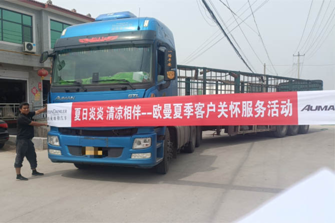 夏日炎炎、酷暑難耐,但有歐曼夏季客戶關懷服務,讓卡友清涼相伴,悅享每一段征程。每年夏天,無論天南海北,歐曼都會秉承“以客戶為中心”的品牌理念,為廣大卡友提供人性化售后服務,并用高質量服務標準,讓卡友們在用車過程中感受最暖心的關懷,進而創造更大價值。