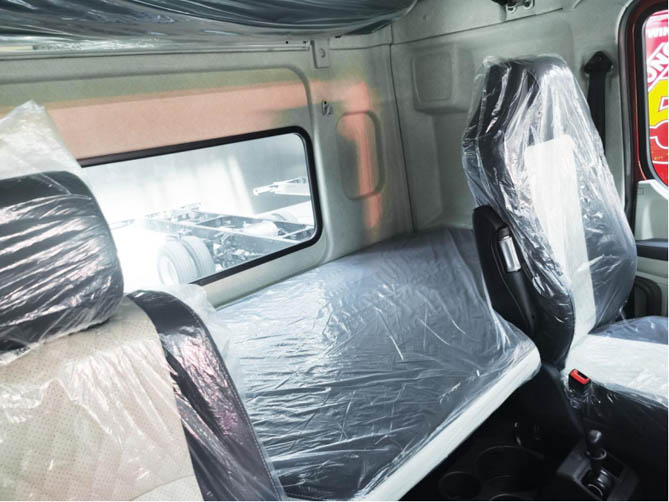 舒適領先: 乘龍H5創富版應用H57加長版駕駛室、高頂雙臥平地板,駕駛室內高達到1.93m,臥鋪寬度更是達到90公分,比國內同類產品寬35公分,同時標配了高端航空座椅、自動空調、豪華大屏、四方位影像,駕乘更舒適、起居更貼心,不負“第一房車”美譽!