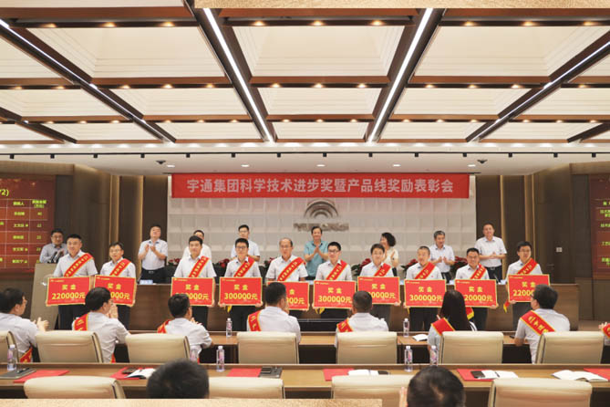7月9日,宇通集團“科學技術進步獎暨產品線獎勵表彰會” 隆重召開,宇通再次以冠絕行業的1308萬元重獎,對科技進步工作中做出突出貢獻的集體和個人予以表彰,總金額、激勵力度、規模之大創該獎項歷史之最。