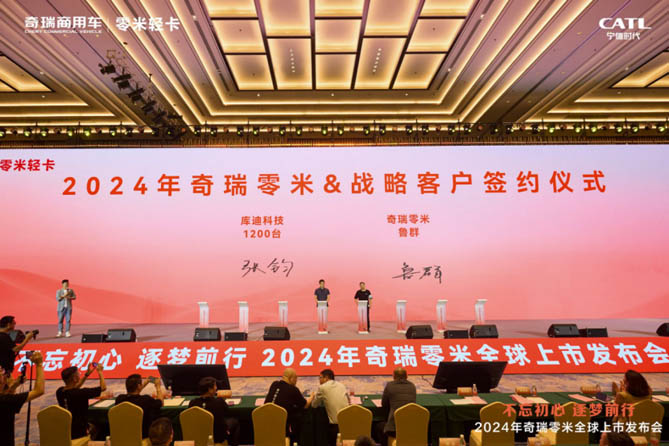 高端4米2電動輕卡,服務0距離。2024年8月14日,以“不忘初心 逐夢前行”為主題的奇瑞零米全球上市發布會在福建寧德三都澳大酒店隆重舉行。福建省第十三屆政協委員、寧德市工商聯副主席、東僑商會會長陳銀平,中國汽車流通協會商用車專業委員會秘書長鐘渭平,寧德時代商用車執行總裁陳光強,寧德時代商用車執行副總裁莎仁其其格,開瑞控股副總經理兼輕卡事業部總經理李杰、奇瑞零米輕卡事業部營銷公司總經理張德貴等出席活動,來自全國各地的奇瑞商用車經銷商、大客戶、合作伙伴以及超20家行業資深媒體齊聚,共同見證這場商用車行業的盛事。