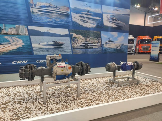 漢德車橋攜明星產品3.5T電驅橋和11.5T雙電機電驅橋亮相會場,與各國嘉賓、客戶推介漢德車橋及產品,交流互動,共同尋求新的合作機會。