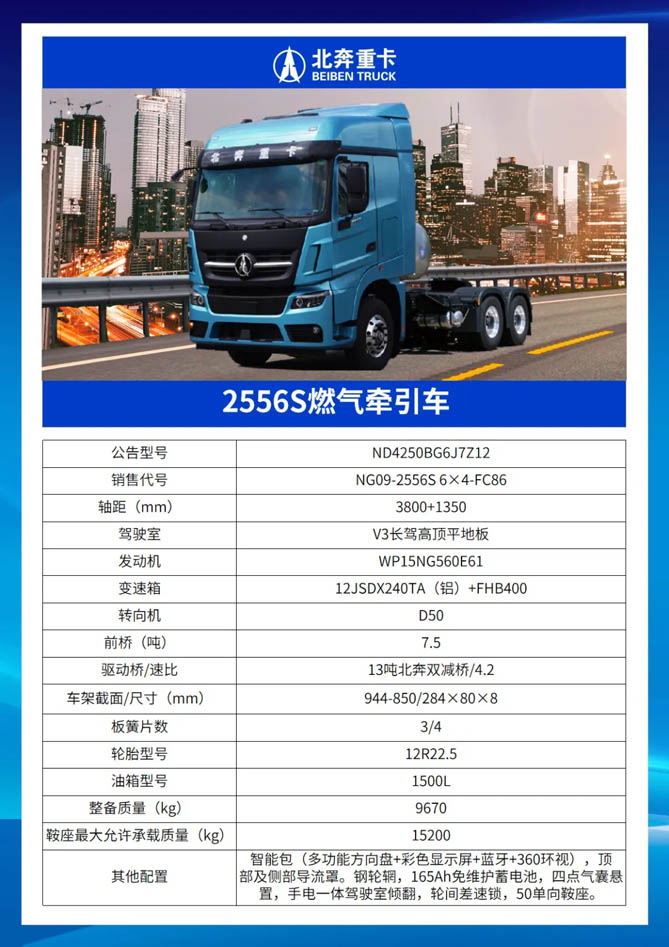 本次展出的北奔·奔馬大馬力燃氣牽引車,據用戶實際運營工況,借助整車高效精準動力匹配、采集定制開發和科學降重輕量化設計等技術,提升整車綜合實力,打造更加優秀的節氣LNG牽引車產品,以超低能耗、超輕自重、超強動力的硬核產品力不斷贏得市場認可。