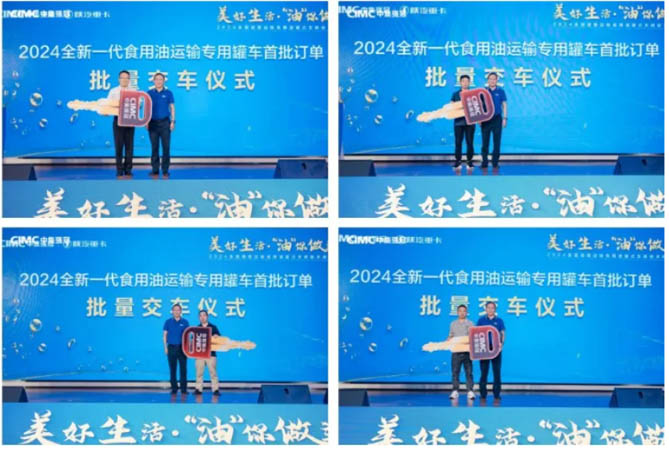 活動現場,全新一代食用油運輸專用罐車首批次批量訂單完成交付。