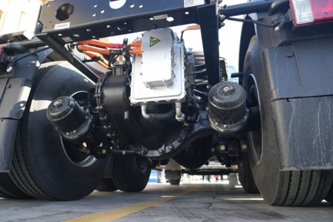 電驅橋作為新能源重卡的核心零部件,其性能直接影響到整車系統的工作效率和可靠性。漢德車橋作為全球商用車橋領域的佼佼者,其獨具匠心的創新產品HDE11.5t扭矩提升橋成為此次交付儀式的一大亮點。這款產品最大輸出扭矩35000Nm,動力性強勁,效率較直驅路線提升3%-5%以上,不僅提升了陜汽H6000E新能源牽引車的整體性能,更為用戶提供了更加可靠、高效的運輸解決方案。