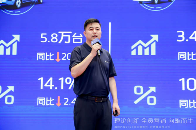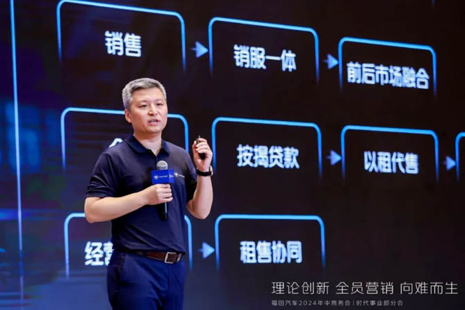 面對新能源的快速發展和商業模式的變革,時代事業部積極擁抱變化,深化轉型升級。會上,福田汽車集團時代事業部營銷副總裁劉剛在《務實創新 攜手共贏》的營銷工作報告中指出,時代事業部上半年存在微車業務占有率波動性下滑,營銷體系存在短板,領航業務穩健發展,但業務結構仍不均衡等一系列問題,面對這樣的問題劉剛給出了解決方案,他表示,在內卷的行情中,我們要健康穩健的生存下去,必須建立前市場+后市場相結合的客戶全生命周期管理模式。從簡化商務政策設計,調整星級評價,推進促銷線上化,到高價高促轉為低價低促,再到給經銷商伙伴減負,將改變做到實處,解決痛處。變革的速度至關重要,不僅僅是對產品或服務的簡單調整,更是涉及到運營模式及企業文化等多方面的全面革新。我們需要主動出擊,而不是被動應對。