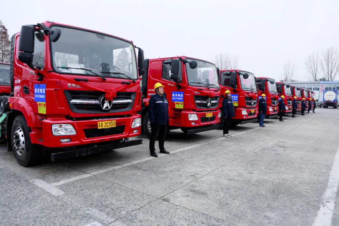 北奔重型汽車集團有限公司副總經理呂利萍、南京市道路運輸協會秘書長劉小慶、江蘇浩宇控股集團董事長陳新江、南京市交通局相關領導、合作伙伴等百余人參加交付儀式。