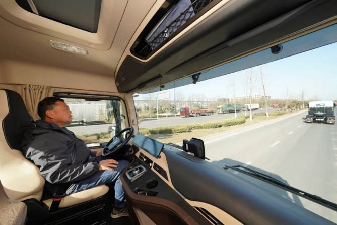 純平地板設計,打造寬敞舒適的駕乘空間。臥鋪寬度在同級別車型中獨占鰲頭,不僅標配600mm寬度臥鋪,更可選配800mm伸縮臥鋪。更有完整雙道密封和全駕駛室的極致密封設計,靜謐性達到國內頂尖水平。自主研發的智慧座艙,深度融合車端和云端數據,搭載適用于重卡應用場景的硬件和軟件系統。具備強大的語音交互功能,只需輕輕呼喚“旺財,旺財”,語音助手即刻響應。