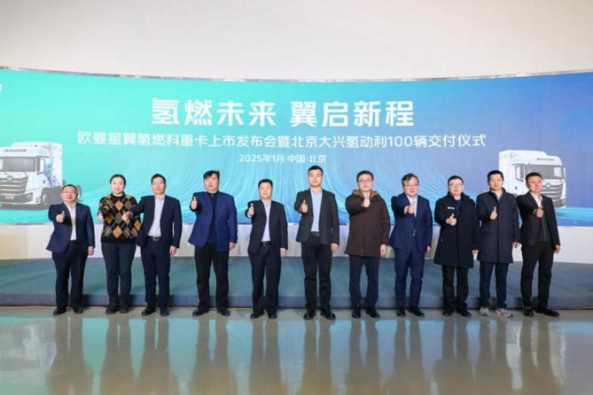 2025年1月18日,以“氫燃未來(lái) 翼啟新程”為主題的歐曼星翼氫燃料重卡上市發(fā)布會(huì)暨北京大興氫動(dòng)利100輛交付儀式在北京超級(jí)卡車體驗(yàn)中心舉行,此次發(fā)布會(huì)不僅標(biāo)志著歐曼在新能源重卡領(lǐng)域的又一重要突破,更展示了歐曼在氫能商用車技術(shù)上的深厚實(shí)力和前瞻布局。