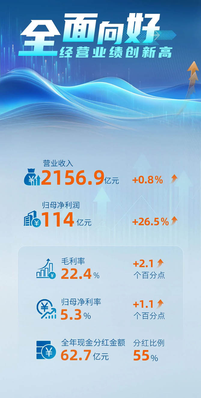 3月27日晚間,中國重汽(000951.SZ)發(fā)布的年報顯示,公司2024年實現(xiàn)營業(yè)收入449.3億元,同比增長6.8%;實現(xiàn)歸母凈利潤14.8億元,同比增長37.0%,利潤增速大幅高于營收增速。公司延續(xù)高比例分紅回報投資者,擬每10股派發(fā)現(xiàn)金紅利6.96元(含稅),現(xiàn)金分紅總額達(dá)8.14億元,占2024年歸母凈利潤的55%。