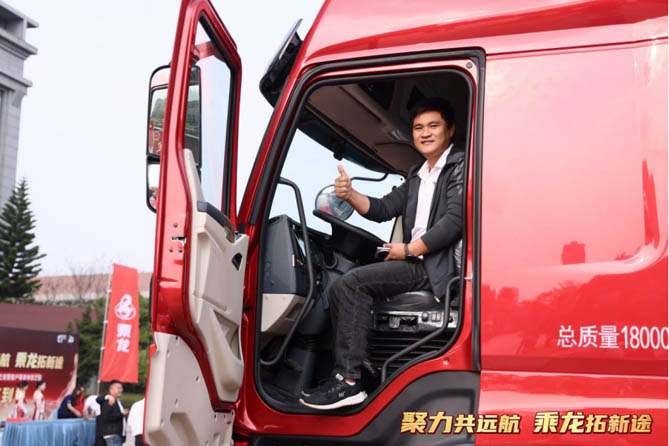 一位乘龍老用戶拍著乘龍H5綠通房車的車廂說:“乘龍的車皮輕是出了名的,這車可以輕松拉11噸免費上高速,每趟都比同行賺得更多!”