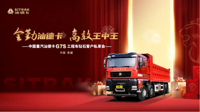 近日,以“全勤汕德卡 高效王中王”為主題的中國重汽汕德卡G7S工程車新疆區域鉆石客戶私享會在新疆盛大舉行,現場火爆認購112臺!本次活動匯聚新疆地區近百名行業領袖與高端客戶,通過產品品鑒、技術講解等環節,對汕德卡G7S工程車有了更全面、更深入的認識。