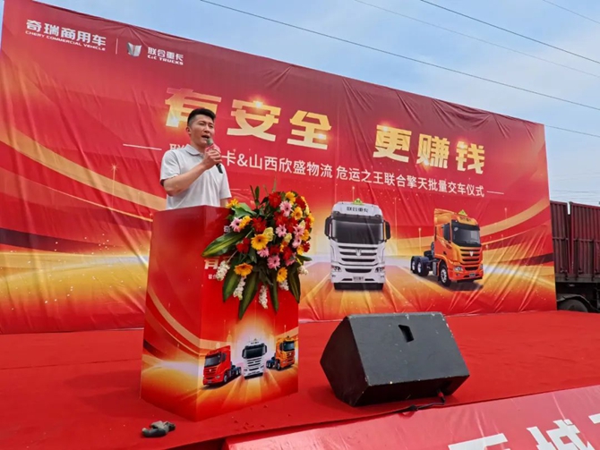 “聯合擎天是奇瑞商用車重磅打造的一款有溫度有擔當的民族重卡,產品的安全性能全面超越了行業內的其他重卡產品,是當之無愧的危運之王。”