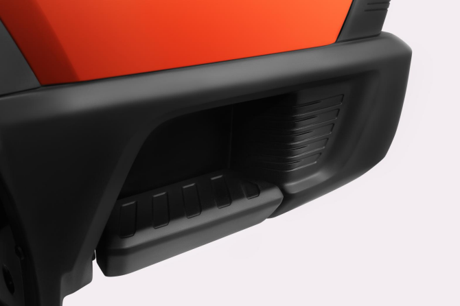貨箱區域的后保險杠分區踩踏設計堪稱神來之筆——290×150mm側面踏板搭配12度傾斜踏面,用戶可根據貨物位置自由選擇踩踏區域,裝卸效率提升的同時,也避免了踩輪胎上下后斗裝載的安全隱患。