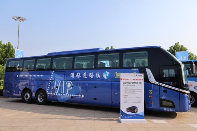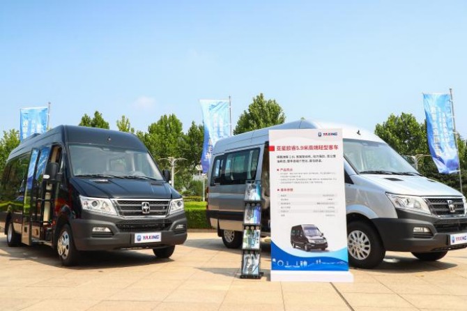 活動現場,亞星客車攜五款明星車型精彩亮相,包含傳統動力和新能源動力,覆蓋商務、公交、旅游等多元場景,每款車型均彰顯濰柴體系下的技術沉淀與市場適配性,為客戶每一趟運營創造更多價值。本次重點展出:5.9米柴油大VAN、7.5米柴油大VAN、14米高端旅游客車、7米級純電動公交車,11米純電城市旅游客車,這幾款展車在山東地區都有大批量訂單,其中14米高端旅游客車YBL6148H1QE1車型配備了超大座椅空間分布,超大行李艙,豪華不失舒適的內飾;在動力方面,搭載濰柴發動機,搭配法士特變速箱和漢德車橋(帶液力緩速器)。這一黃金動力鏈與全承載骨架相結合,不僅帶來了強勁的動力輸出——換擋順暢自如、提速輕快敏捷,即便爬坡時也能保持穩定狀態,更憑借高效的動力傳輸效率實現了優異的燃油經濟性,為運營過程中的節油降耗提供了有力支持,滿足客戶長途出行時的高運載需