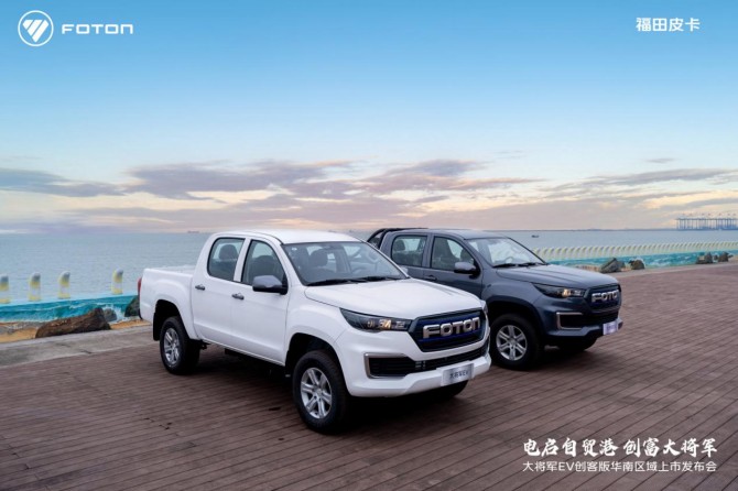 2025年雙十一,“電啟自貿港,創富大將軍” 福田大將軍EV創客版華南區域上市發布會在海南海花島盛大啟幕,超級純電大皮卡重磅上市,售價為11.98萬元起。