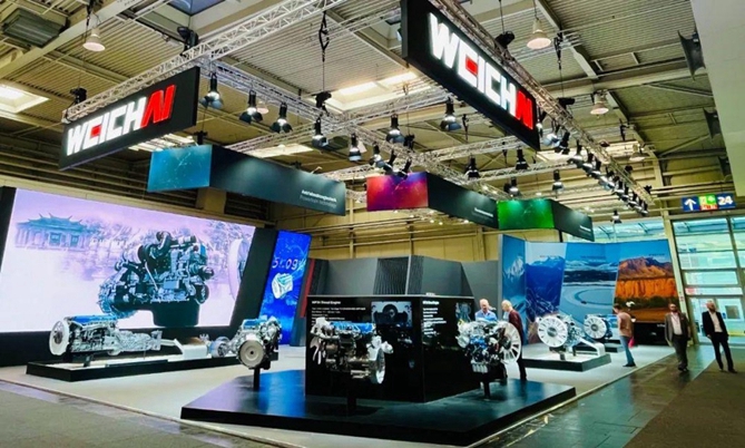 此次濰柴動力還在2022 IAA上展出基于全新H平臺的WP2H/5H/8H/15H等數款H系列產品,功率覆蓋190-660馬力,為全球輕中重型商用車提供更清潔、更高效、更可靠的全系列、全領域動力產品。