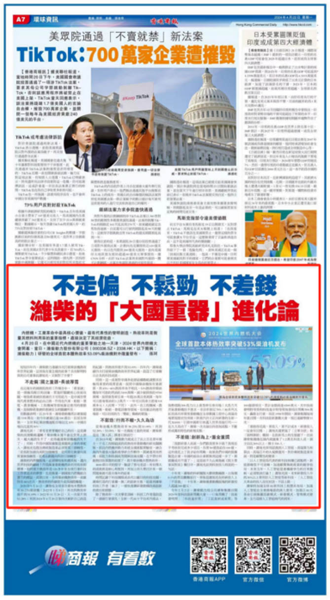 4月20日,在中國近代內(nèi)燃機(jī)的重要肇始之地—天津,2024世界內(nèi)燃機(jī)大會開幕。當(dāng)日,濰柴動力研發(fā)的全球首款本體熱效率53.09%柴油機(jī)對外隆重發(fā)布。