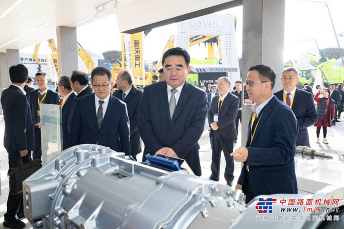 在展會現場,山東重工集團黨委書記、董事長滿慎剛親自為中國首款120-400噸級電傳動礦卡動力新品揭幕。這款新品,用發動機帶動主發電機發電,將電能直接傳至輪邊電動機驅動車輪行走,實現了動力傳輸的高效與穩定。