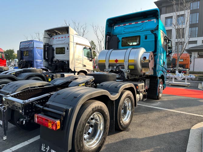 燃氣重卡方面,北京追夢LNG普貨運輸牽引車,搭載的是X15N-530馬力康明斯發動機,同時可以選擇500馬力,匹配采埃孚12擋AMT手自一體變速箱。整車自重輕至8.5T,數智節氣更高效,且長、短途差異化標定,自動擋標定程序快速迭代,在保證操控性能持續提升情況下氣耗優于手動擋,百公里綜合氣耗較同類車型低1-2kg。