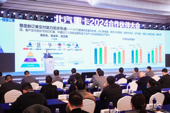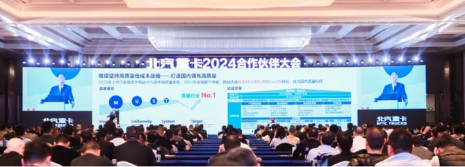 1月12日-13日,以“客戶思維,創新驅動,馭勢而上”為主題的北汽重卡2024年合作伙伴大會在江蘇常州隆重召開。來自全國各地的經銷商、服務商以及供應商合作伙伴、媒體代表齊聚一堂,共同回顧2023年北汽重卡發展中的成績與不足,研判2024年重卡市場發展前景,開啟2024年馭勢增長的全新目標。