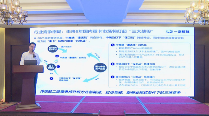 會議最后,北汽福田法規(guī)與認(rèn)證部副總監(jiān)袁軍成和中國重汽戰(zhàn)略規(guī)劃部經(jīng)理于海淼分別就商用車物流運輸市場和商用車海外市場發(fā)展獻(xiàn)言獻(xiàn)策,提出了諸多建設(shè)性的發(fā)展建議。