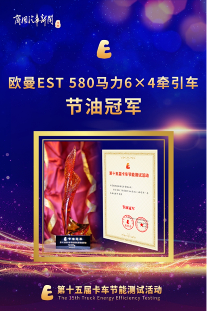 獲得牽引車組節油冠軍的是來自北京福田戴姆勒汽車有限公司的“歐曼EST 580馬力6×4牽引車”。歐曼重卡是重卡行業“老將”,也是節能測試的“熟面孔”,在專業測試場、專業測試儀器的一次次檢驗下,歐曼重卡不斷升級的節油技術、不斷刷新的油耗成績展現了其作為重卡行業“種子選手”的實力。