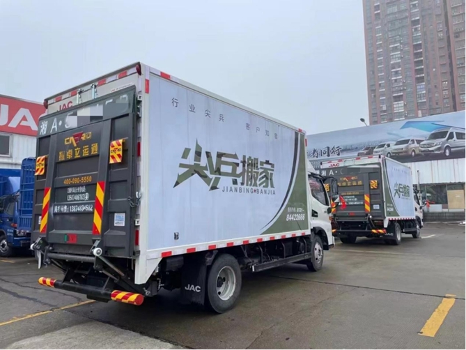 為什么要采購(gòu)不同類(lèi)型的運(yùn)輸車(chē)?因?yàn)榘峒疫\(yùn)輸場(chǎng)景多樣,專(zhuān)車(chē)專(zhuān)用效率才更高。小區(qū)地庫(kù)和架設(shè)的電線往往對(duì)整車(chē)高度有限制,一般在2米左右,但是一些地庫(kù)內(nèi)消防設(shè)施的離地高度比地庫(kù)限高還要低。因此,市內(nèi)搬家運(yùn)輸時(shí),袁總會(huì)根據(jù)小區(qū)情況選用駿鈴地庫(kù)車(chē)。駿鈴廂車(chē)地臺(tái)低,裝有電動(dòng)尾板,裝卸貨比較方便,用起來(lái)得心應(yīng)手,深得袁總喜愛(ài)。袁總介紹說(shuō)搬家業(yè)務(wù)消耗在路上的運(yùn)輸時(shí)間其實(shí)并不會(huì)太長(zhǎng),反而是家具裝卸搬運(yùn)環(huán)節(jié)最耗時(shí)間,地臺(tái)低、有電動(dòng)尾板,大件家具搬運(yùn)方便,工人搬運(yùn)時(shí)也能更省力,運(yùn)輸效率就是這樣提高的。