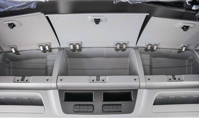 不僅如此,為了廣大卡友實(shí)現(xiàn)一邊賺錢一邊生活的夢(mèng)想,大黃蜂Plus還致力于打造豪華裝修、舒適便捷的兩室一廳。首先,中控面板的周圈以及副駕側(cè)的裝飾條都做了高亮處理,提升了質(zhì)感。方向盤、座椅多處采用了明黃材料裝飾,顏色更加科技時(shí)尚。還配置了觸感極佳的麂皮裝飾,在給予視覺沖擊的同時(shí),打造更具品質(zhì)感的移動(dòng)之家,整個(gè)駕駛室為卡友打造奢華、舒適的駕駛環(huán)境;其次,駕駛室生活區(qū)進(jìn)行了細(xì)節(jié)優(yōu)化,臥鋪區(qū)域增加了燈光、車窗控制開關(guān)和USB充電口,卡友在臥鋪休息時(shí),無需起身就能實(shí)現(xiàn)手機(jī)充電、車窗關(guān)閉,非常方便。駕駛室還配置了220V充電接口和晾衣桿,能夠滿足卡友出門在外插電飯煲、熱水壺以及晾曬衣服等基本生活需求;此外,還設(shè)置了豐富的儲(chǔ)物空間。中控臺(tái)上方布置了3個(gè)封閉式儲(chǔ)物柜以及4個(gè)儲(chǔ)物格,可以分別存放換洗衣物、洗漱用品、就餐食品等各類物品。可以說,奧鈴大黃蜂Plus不只是簡單的配置升級(jí),而是營造了一種全方位、人性化的駕乘體驗(yàn),在細(xì)節(jié)設(shè)計(jì)上考慮卡友用車中真實(shí)需求,真正為卡友打造移動(dòng)之家,提升卡友綜合幸福感。