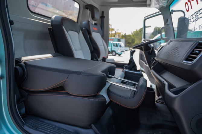 為了讓卡友在跑貨運的途中能夠更好地休息,奧鈴Pro對座椅做了放平的設計。然而“座椅放平涉及一個非常重要的地方,想要放平的話,肯定會喪失包裹感、舒適度。但內飾設計部門的要求是既不能降低舒適度,還要實現放平功能。為了解決這個問題,我們討論了很多方案,先是從理論上分析可能性,再去做硬件,不停地驗證,不停地推翻重來。那段時間,幾乎所有人腦子里都在想這個問題,用了好幾個月才解決。”內飾附件業務經理郝榮偉特別介紹了奧鈴Pro座椅的研發思路和過程。“這次我們把產品設計思路往下延伸,比如說重卡上采用的氣囊矯正座椅,我們把他移植到了奧鈴Pro上。座椅內的海綿泡沫結合使用了多種硬度材料,乘坐時人體的壓力分布更合理,也讓座椅的包裹感大大提高。”