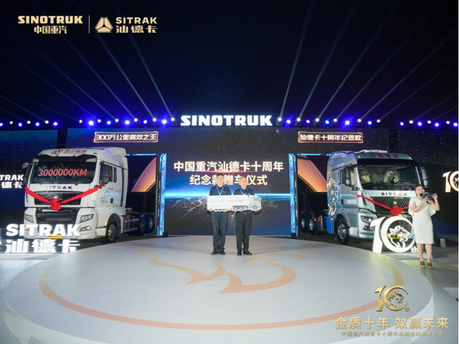 流金歲月見證高效傳奇,十載汕耀登頂高端巔峰,7月2日,“金質十年 效贏未來——中國重汽汕德卡十周年品牌盛典榮耀之夜”在青島圓滿舉辦?;顒蝇F場,中國重汽汕德卡相關領導、經銷商、合作伙伴、供應商、行業媒體以及首批汕德卡“五星百萬騎士團”代表共襄盛舉,見證汕德卡以王者之姿開啟下一個榮耀十年。
