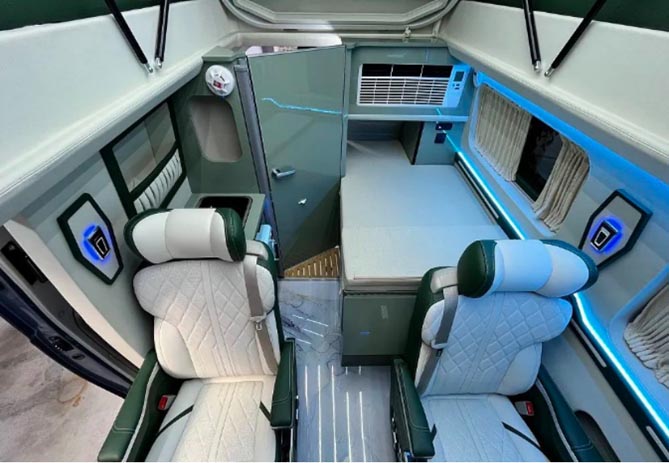 這款由依維柯聚星底盤打造的齊星星領多功能旅居房車的車身內部,可布局4座商務座椅組合或6人對卡座版,空間利用率高,坐乘舒適安全;采用齊星最新發布的四柱電動硬升頂結構,在保溫隔熱與便利性同時完善了整車的防水性,只需通過一鍵升頂,內高可以達到2米,方便駐車狀態的起居活動空間;內外雙升頂的組合,讓二層升頂可以形成一張1950mm*1150mm雙人床,硬升頂的連接結構,貼心安裝了側面采光窗與頂部的房車天窗,一覺睡到自然醒。