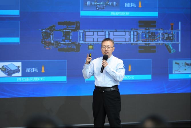 活動現(xiàn)場,福田歐航歐馬可專業(yè)總師鮑永明對全新一代歐馬可智藍系列新品進行詳細的技術介紹。針對高效城市貨運場景,歐馬可基于全新一代正向開發(fā)的純電輕卡平臺打造歐馬可智藍ES1純電輕卡。該產品匹配大單包電池、自研電驅橋、更智能的2.0電控系統(tǒng)組成的全新三電系統(tǒng),配合制動能量回收、E/P雙工作模式等節(jié)能技術及優(yōu)化整車風阻、滾阻及整車控制策略等節(jié)能舉措,實現(xiàn)車輛標準工況續(xù)航提升20%;同時,兼顧強承載的輕量化設計、高安全的內飾配置,不僅帶來更加舒適的駕乘體驗,更有效提升整車運營價值。