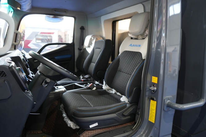 對于房車旅行來說,長期跑在路上是常態,因此駕乘舒適性至關重要。歐馬可智藍HS1混動房車駕駛室寬敞明亮,提供更廣闊視野。同時搭配機械減震座椅,駕駛員可根據自己的體重調節減震強度,此外還帶有單側扶手,有效緩解長時間駕駛疲勞感。此外,車上還配有多功能方向盤、液晶儀表、電子手剎等智能化配置,讓操作更便利,增加旅途趣味性。