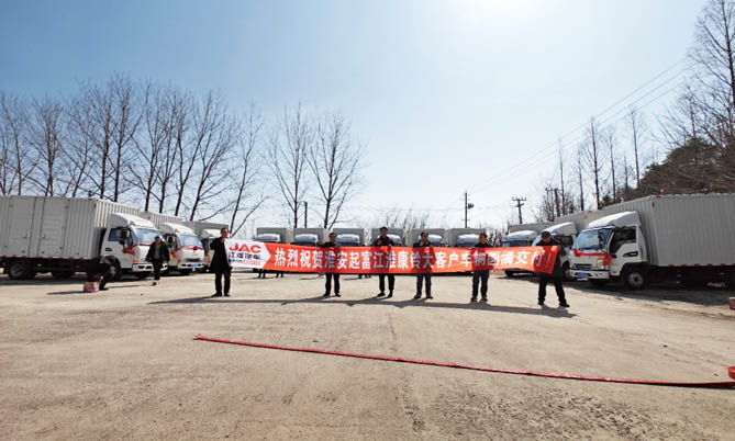 在唐山,江淮1卡帥鈴向河北知名物流公司批量交付帥鈴Q6、S9倉欄車型,完美匹配客戶單趟運輸貨物多、日均300-500公里的高強度運輸需求。