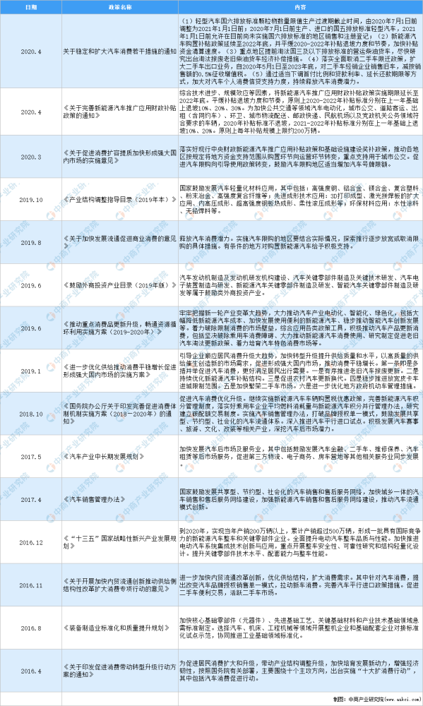 2016-2020年中國汽車零部件行業相關政策一覽表